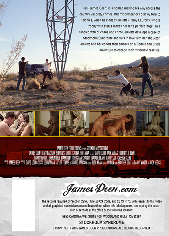 SYNOPSIS: Ian played by Deen, is a nomad making his way across the country via petty crimes. Misdemeanors quickly turn to felonies, when he kidnaps Juliette, played by Remy LaCroix, whose trophy wife status makes her Ian’s perfect target. In a tangled web of chaos and deception, Juliette develops a case of Stockholm syndrome and falls in love with her abductor. Juliette and her cohort then embark on a Bonnie and Clyde adventure to escape their miserable realities with a visceral sex and crime rampage.